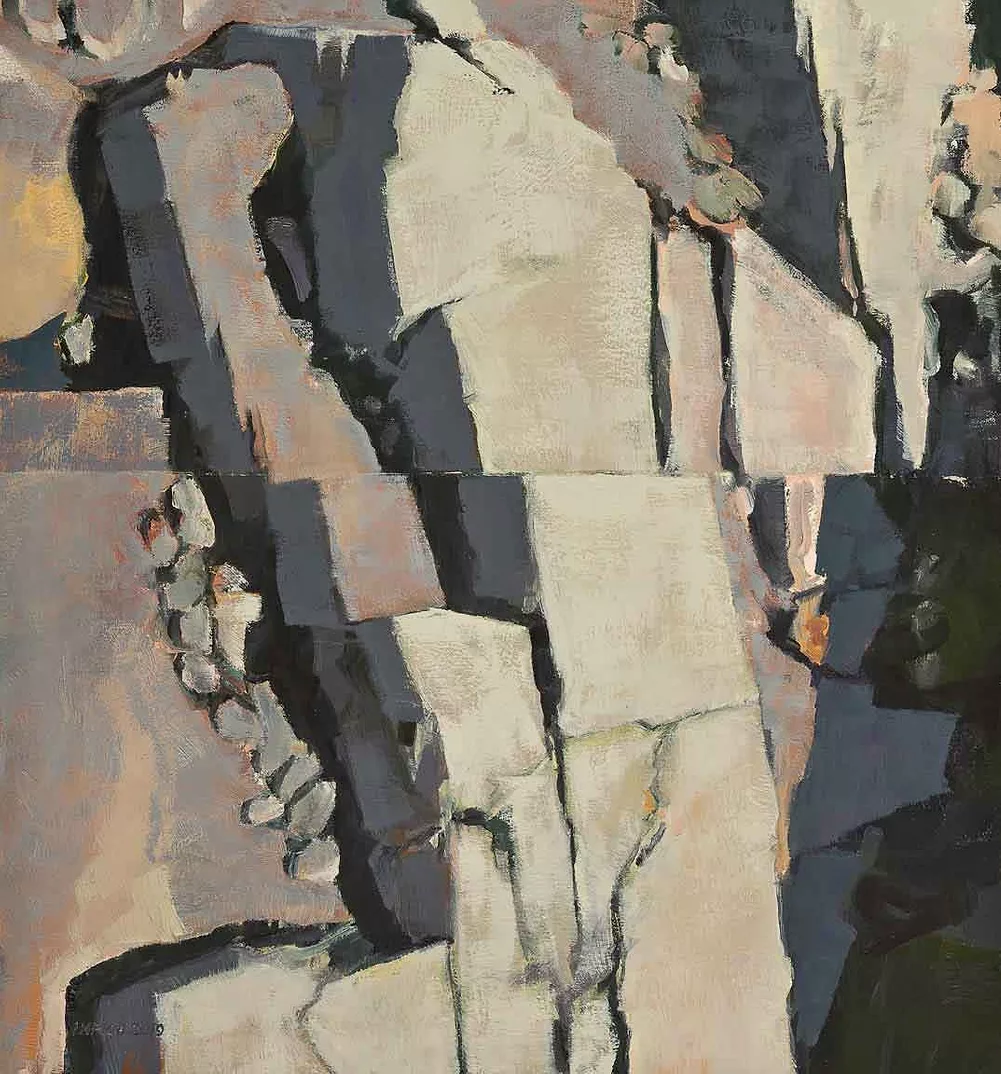 “A fifty-foot roll of paper can keep a kid busy for many hours,” remarked painter Steve Imrich, recalling how his mother supplied him with rolls of shelf paper for drawing as a child. Imrich, a Cambridge-based artist, remembers rolling out the giant substrate across his entire house, plotting action drawings like volcanic eruptions and battlefields. Imrich studied studio art in college but found himself drawn to the practicality of architecture. However, his interest in art persisted, and he now works full time on his painting practice. “It’s been a journey,” he said, “but I still feel as energized as when there was a roll of shelf paper beckoning.”