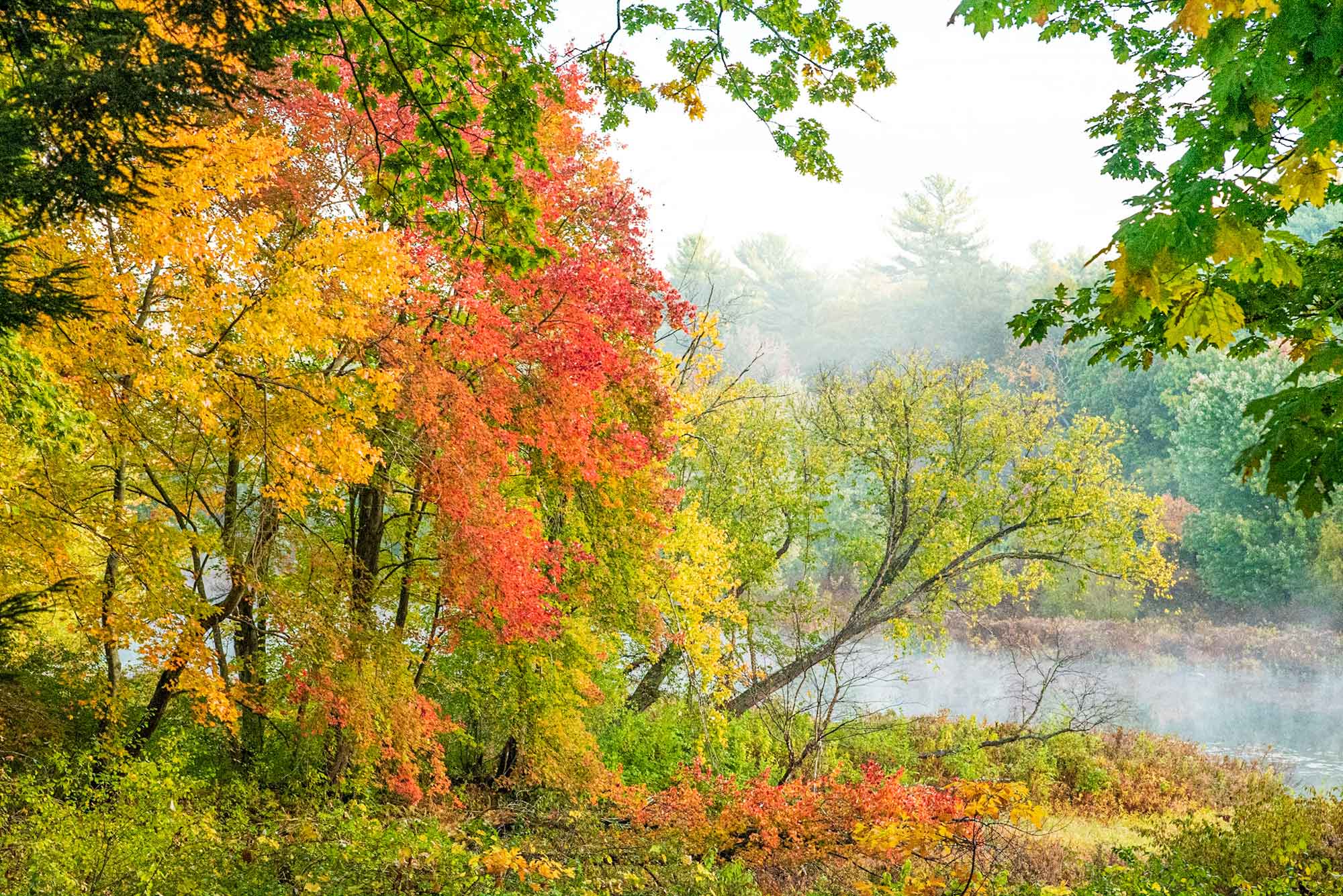 The misty river colors were found on the Sudbury River in the early morning.