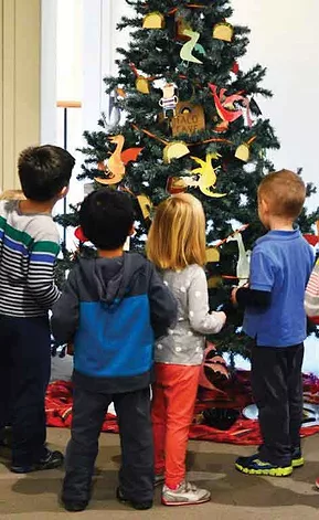 The exhibition’s focus on children’s literature makes Family Trees unique among the many holiday events in Concord. The books are chosen by the Concord Museum’s Guild of Volunteers Co-Chairs, Pam Nelson and Lyn Carroll, along with Karen Ahearn and Fayth Chamberland, children’s room librarians at the Concord Free Public Library, and the staff of the Concord Museum. Each tree serves as a canvas for the artistic creations of a dedicated team of volunteer decorators—artists and artisans, school children and teachers, librarians and garden club members, and sometimes even the authors and illustrators themselves. Inspired by the storyline, the illustrations, the characters, or setting of a particular book, the decorators let their imaginations take flight, much to the delight of visitors of all ages.