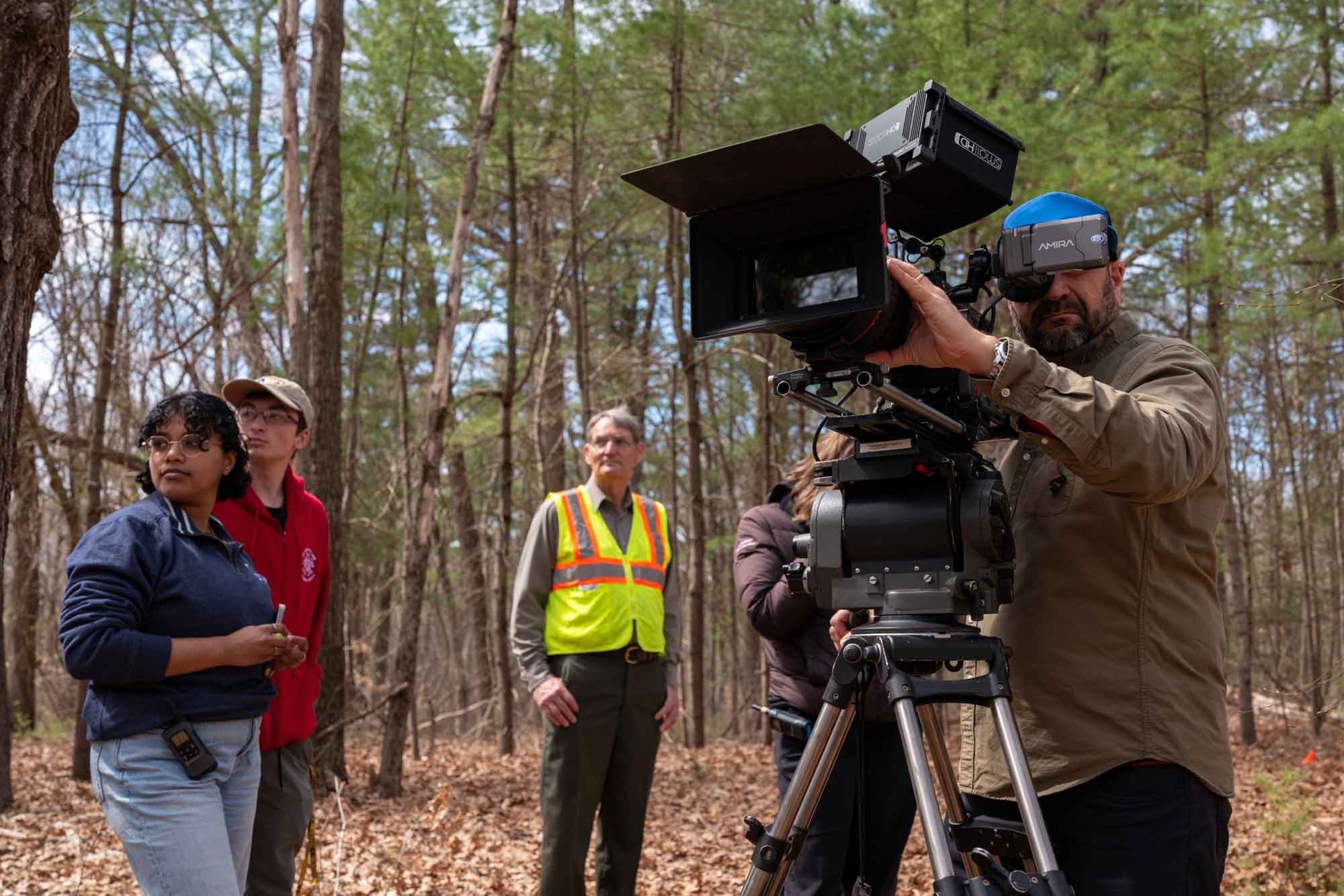 (from left to right) Associate Producer Shyala Jayasinghe, Apprentice Editor Colin Costa-Walsh, MMNHP Park Ranger Bill Fuchs, Co-Producer Megan Ruffe, and Cinematographer Antionio Rossi at the reenactment event.