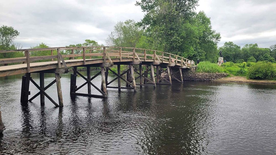 After searching Barrett’s farm, a British detachment returned toward the main force, stopping briefly outside Brown’s tavern. Handley’s subsequent testimony recounted, “At the time of the fight, the British, consisting of about one hundred, had returned from Col. Barrett’s as far as the tavern, and three or four officers were in the house, taking some drink … The officers offered to pay, and Mrs. Brown declined; they told her not to be afraid, for they should do her no harm, and paid for their drink.” While the officers and soldiers relaxed on the tavern’s lawn, fighting erupted at the North Bridge. Surprisingly, Handley heard the gunfire, but the officers he tended to did not. “I heard the guns at the bridge, but the British did not appear to hear them. They marched on very soon but were in no haste. It was always said that they did not know the fight till they passed the bridge and saw the men that had been killed.”3
