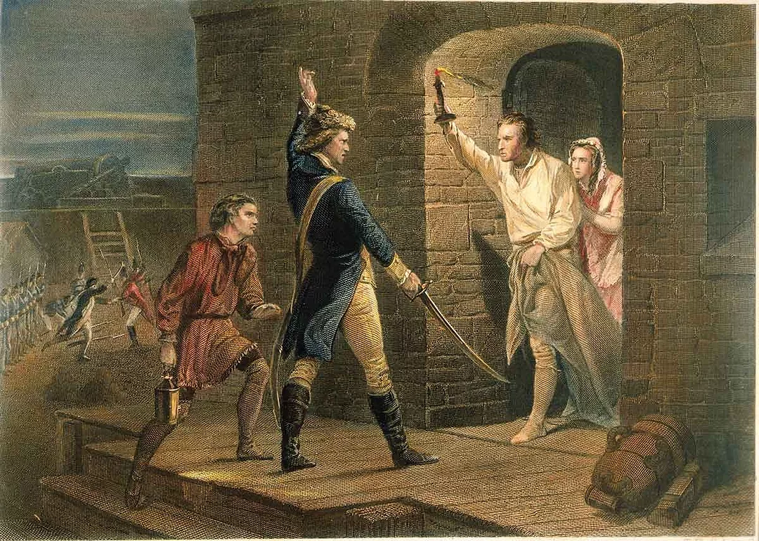 Barely having his land-legs under him after disembarking the ship that had brought them from Canada, as Allen later wrote, he saw “multitudes of citizens…excited by curiosity, crowded together to see us…. The throng was so great, that the King’s officers were obliged to draw their swords, and force a passage to Pendennis castle, which was near a mile from the town, where we were closely confined, in consequence of orders from General Carlton, who then commanded in Canada.”