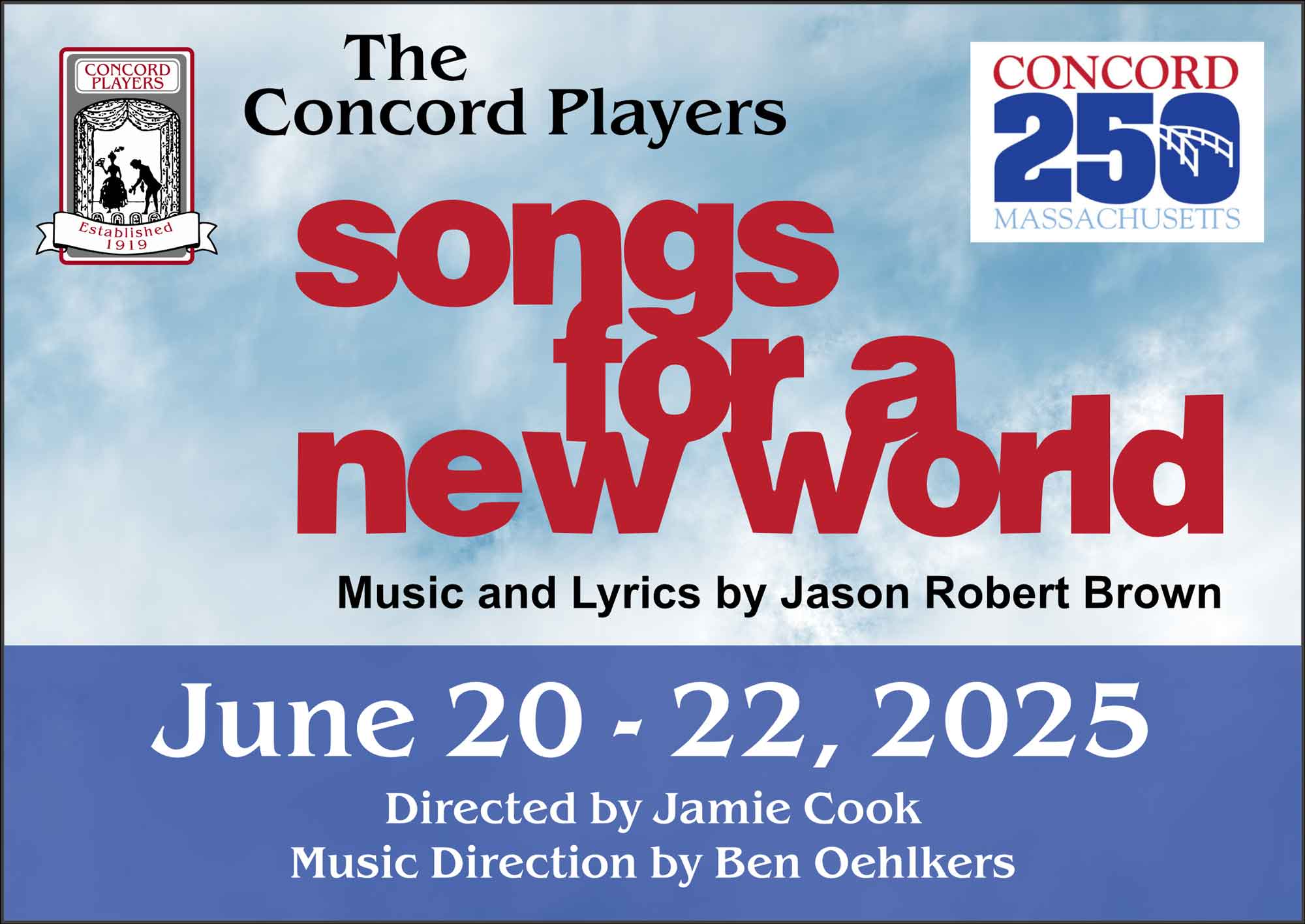 Based on the music of Jason Robert Brown, Songs for a New World depicts the most intense moment any person can go through: a moment of tremendous change. The show is somewhere between musical and song cycle - a series of songs all connected by a theme: the moment of decision. With a rousing score that blends elements of pop, gospel, and jazz, featuring tight harmonies and daring vocals, Songs for a New World transports its audience from the deck of a Spanish sailing ship bound for a new land, to the ledge of a New York penthouse. Characters range from the mother of a Revolutionary soldier awaiting the end of the brutal war, to a young man in the Bronx dreaming of becoming a famous basketball player, to a forlorn and neglected Mrs. Claus lamenting as Christmas approaches. June 20 – 22