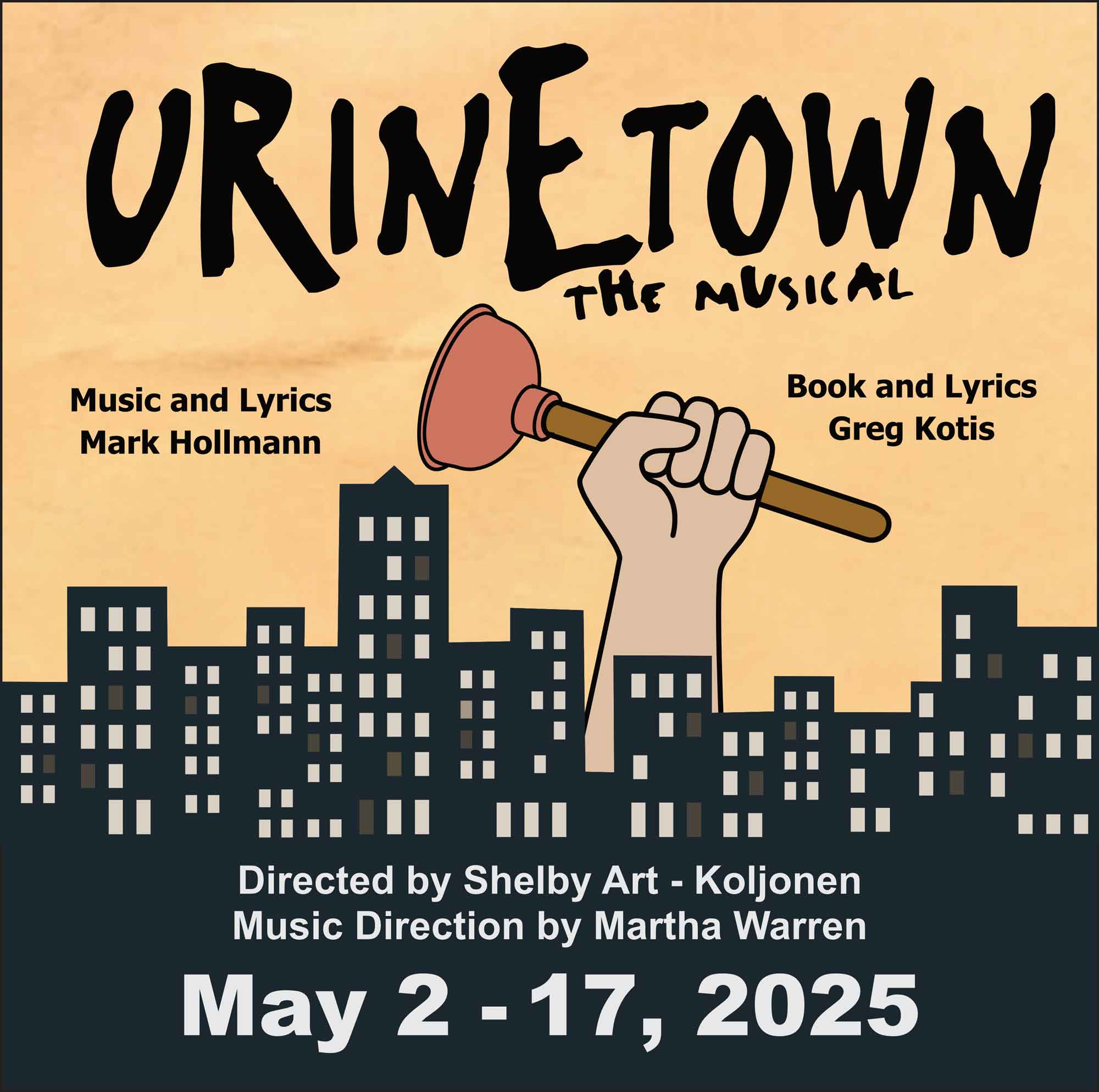 A slightly different kind of revolution will take place in historic Concord with The Concord Players’ production of URINETOWN: The Musical! It’s a dark time in a dark city, where a 20-year drought has led to severe water restrictions – including a ban on private toilets. Public pay toilets are controlled by the evil ‘Urine Good Company,’ which is gleefully gouging huge profits off a very basic human right: the right to pee. Despite the title, this multiple Tony Award winner is an irreverent satire, whose sharp wit and non-stop humor presents the endlessly comic side of unchecked capitalism, corporate greed, and social irresponsibility. May 2 - 17