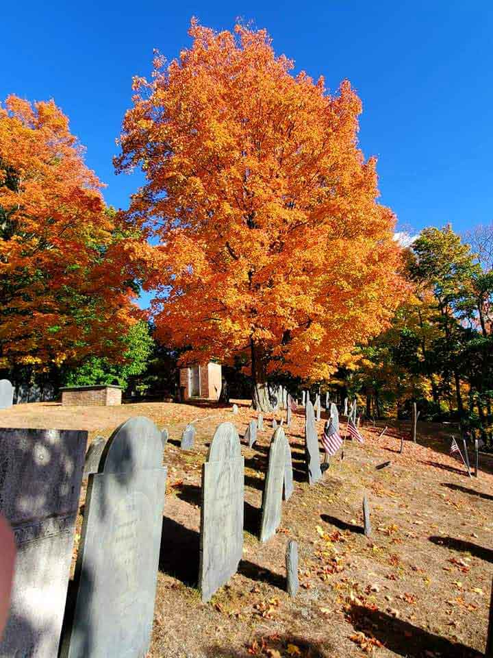 | ©Richard SmithConcord has great cemeteries, and the trees in them are spectacular in the autumn. Thoreau found a particular irony in the beauty of the dying leaves covering the graves of his fellow townsmen, writing “These leaves teach us how to die…How beautifully they go to their graves!” Transcendentalist that he was, Thoreau couldn’t help but comment on the circle of life that we witness every October.