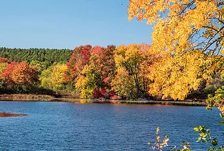 The colors of Concord in fall are so beautiful they bring a glow to our minds and a smile to our faces. The reds, oranges, and yellows against a green background are emphasized as they reflect in our waterways.